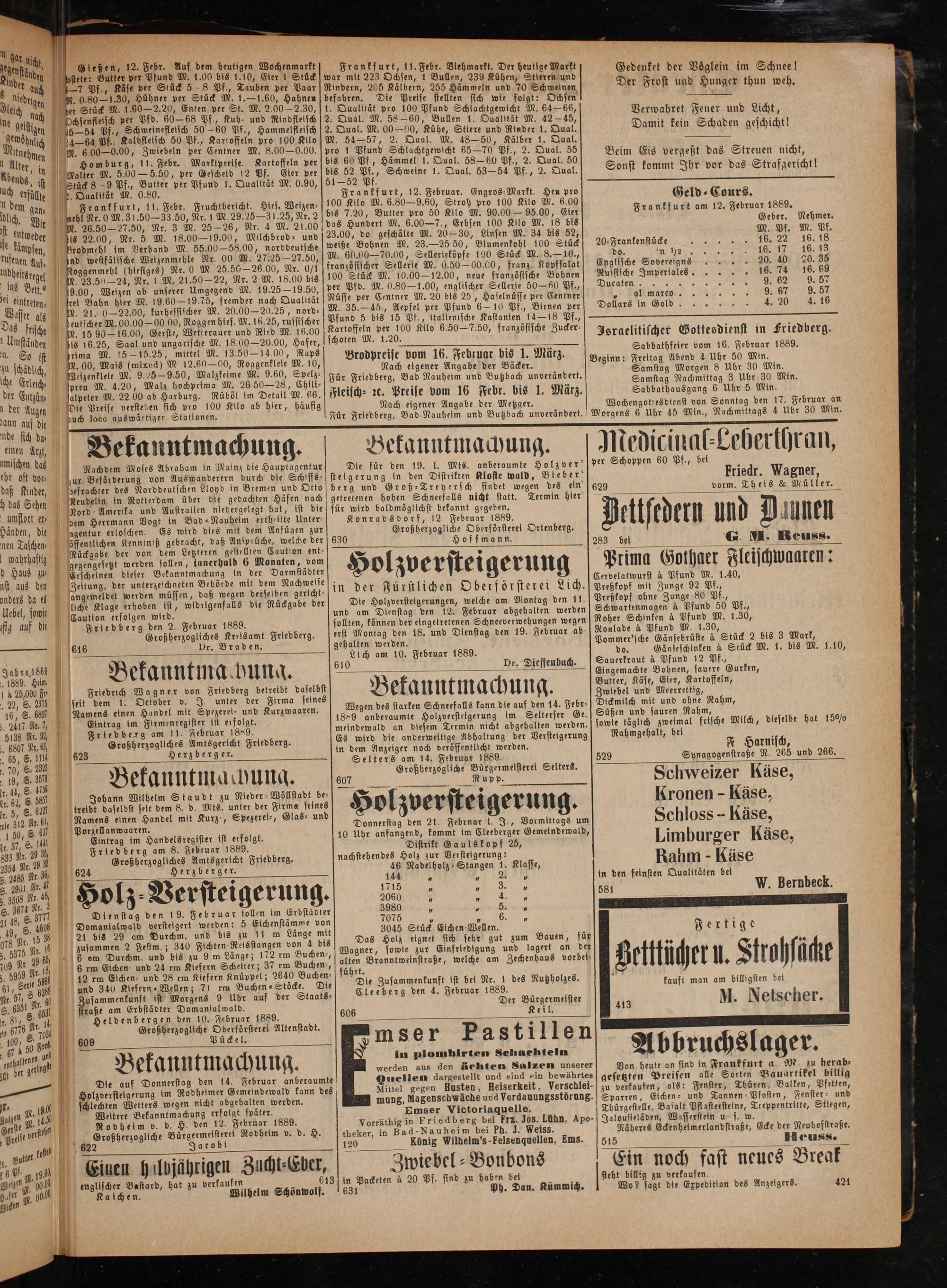 Friedberg den 2. Februar 1889.