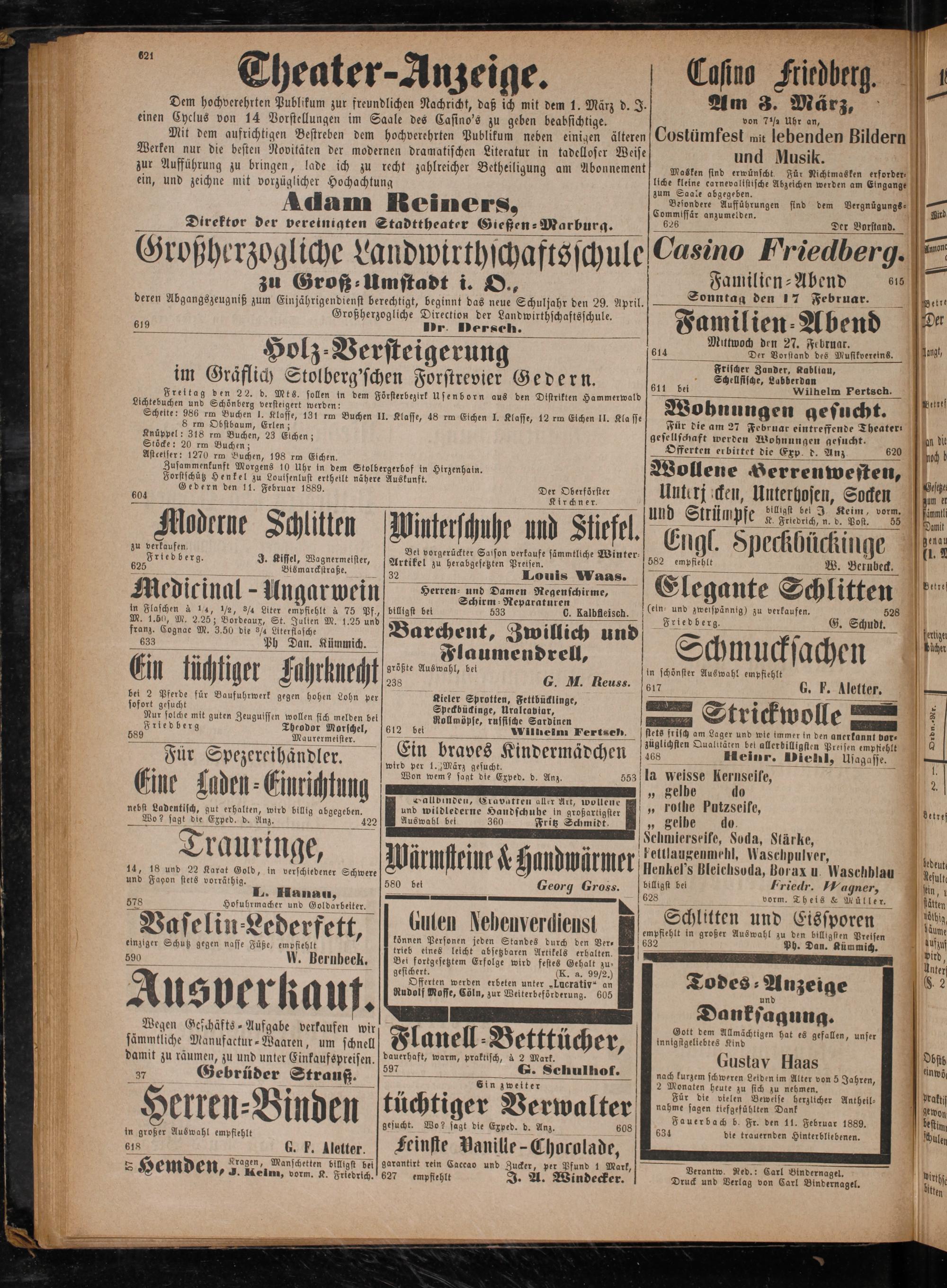 5 Hemden, J. Keim, vorm. K. Friedrich.“ 627 empfiehlt J. A. Windecker. Druck und Verlag den Garl Biabernagel l