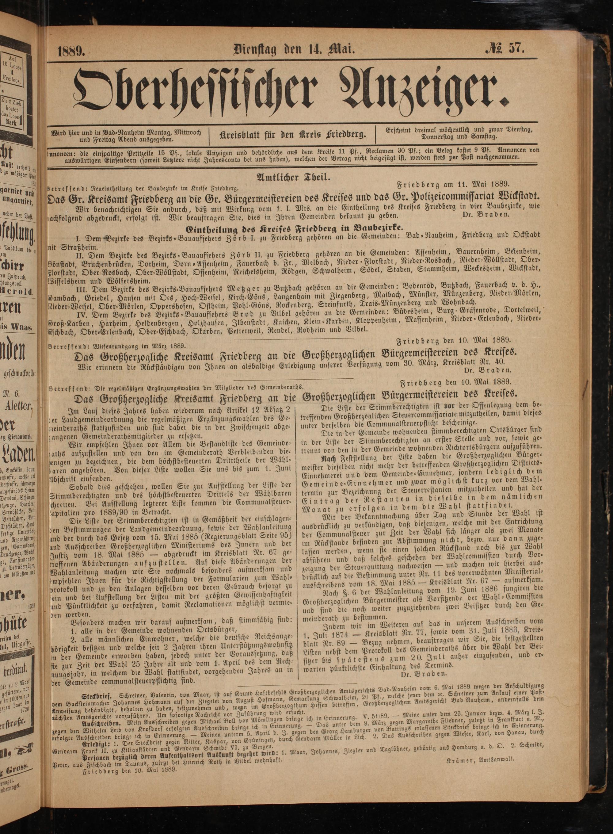Friedberg den 10. Mai 1889.