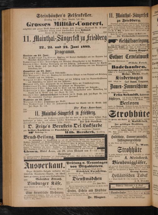 persönlicher Leitung seines Kapellmeisters Herrn Stützel. 5 f Entrée 25 Pf.— Progromme an der Kasse. 2348 3 8— dern Cel Groß date 5 5 5 75733 3 5 Preis für das trockene Coubert ist Mark 1.50. 11d hier * 0 5 bebe 1 Maintl J 2356 Die Wirthschafts- Commission. 11 hal-Sängerfest zu Friedberg„ge 2 5 0 2 den: 19 2* Heschiftsverleguug. 15 1 eschüf Sberlegung.