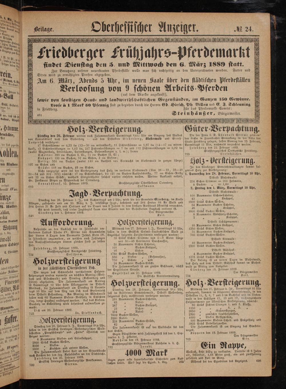 Friedberg, 18. Februar 1889.