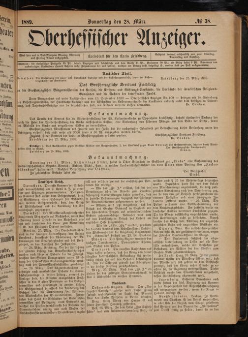 Großherzogliches Kreisamt Friedberg. Dr. Braden.