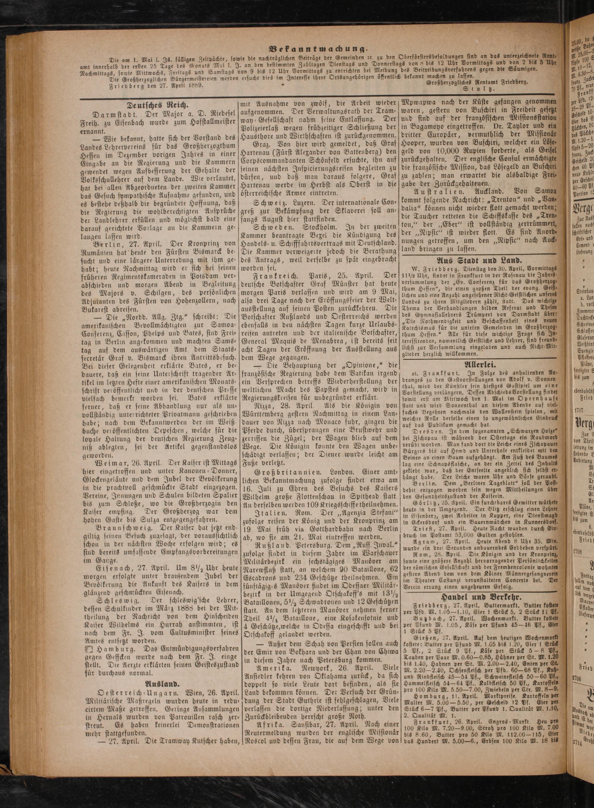 Aus Stadt und Land. W. Friedberg. Dienstag den 30. April, Vormittags