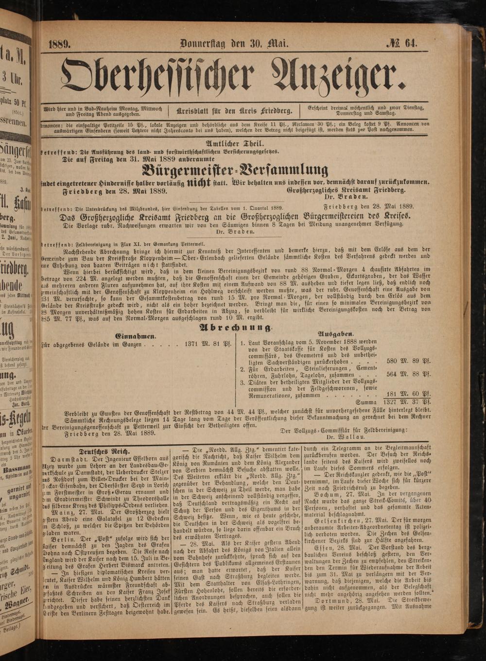 Friedberg den 28. Mai 1889.
