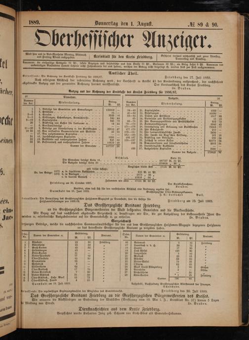Scharmann. iareffend: Die regelmäßigen Ergänzungswahlen der Mitglieder des Gemeinderaths. Friedberg den 30. Juli 1889.