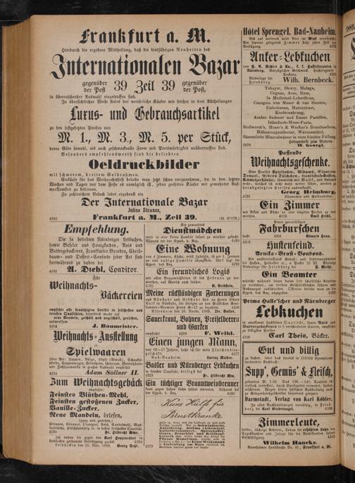 Einkäufe für das Weihnachtsfest beliebe man jetzt schon vorzunehmen, da in den letzten Wochen und Tagen vor dem Feste es unmöglich ist, jeden geehrten Käufer mit gewohnter Auf—