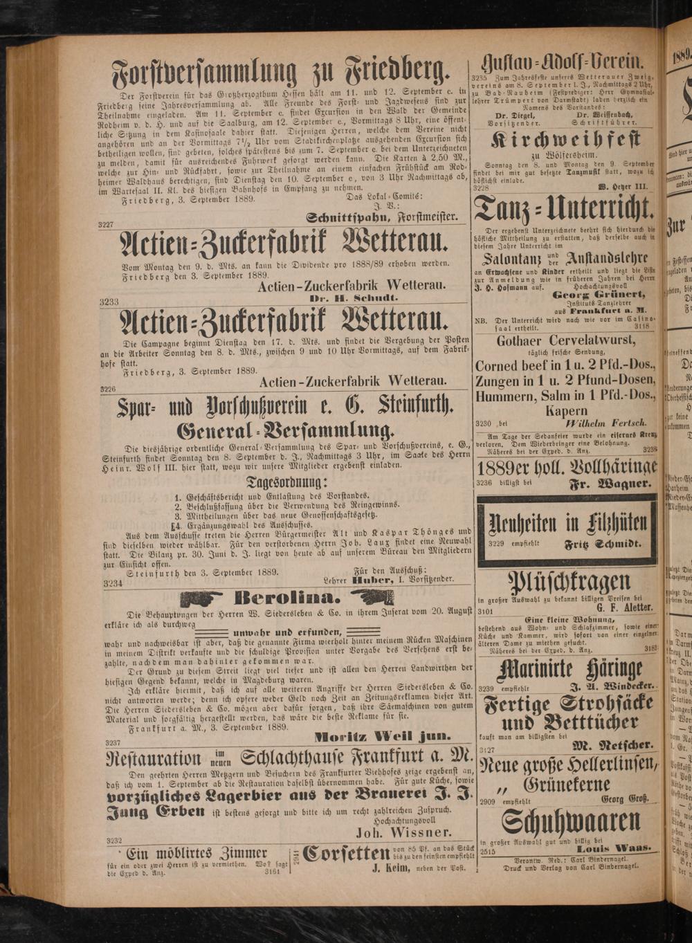 Friedberg, 3. September 1889. Das Lokal-Comité: