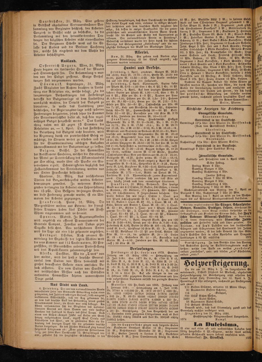 Verloosungen. Freiburger 10 Fr.⸗Loose von 1879. Gewinn⸗ Ziehung am 15. März 1890.— Heimzahlung am