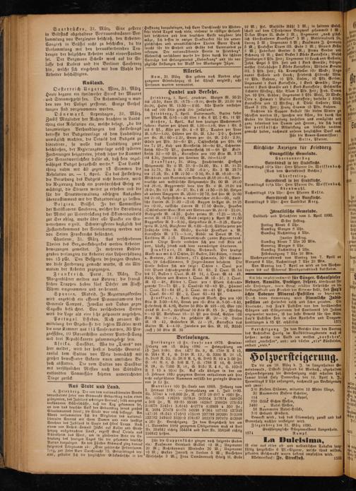Morgens 6 Uhr, Nachmittags 7 Uhr 20 Min. 1 Von Montag den 7. April an wird an den Wochen. tagen bis auf Widerruf Abendgottesdienst stattfinden. 55