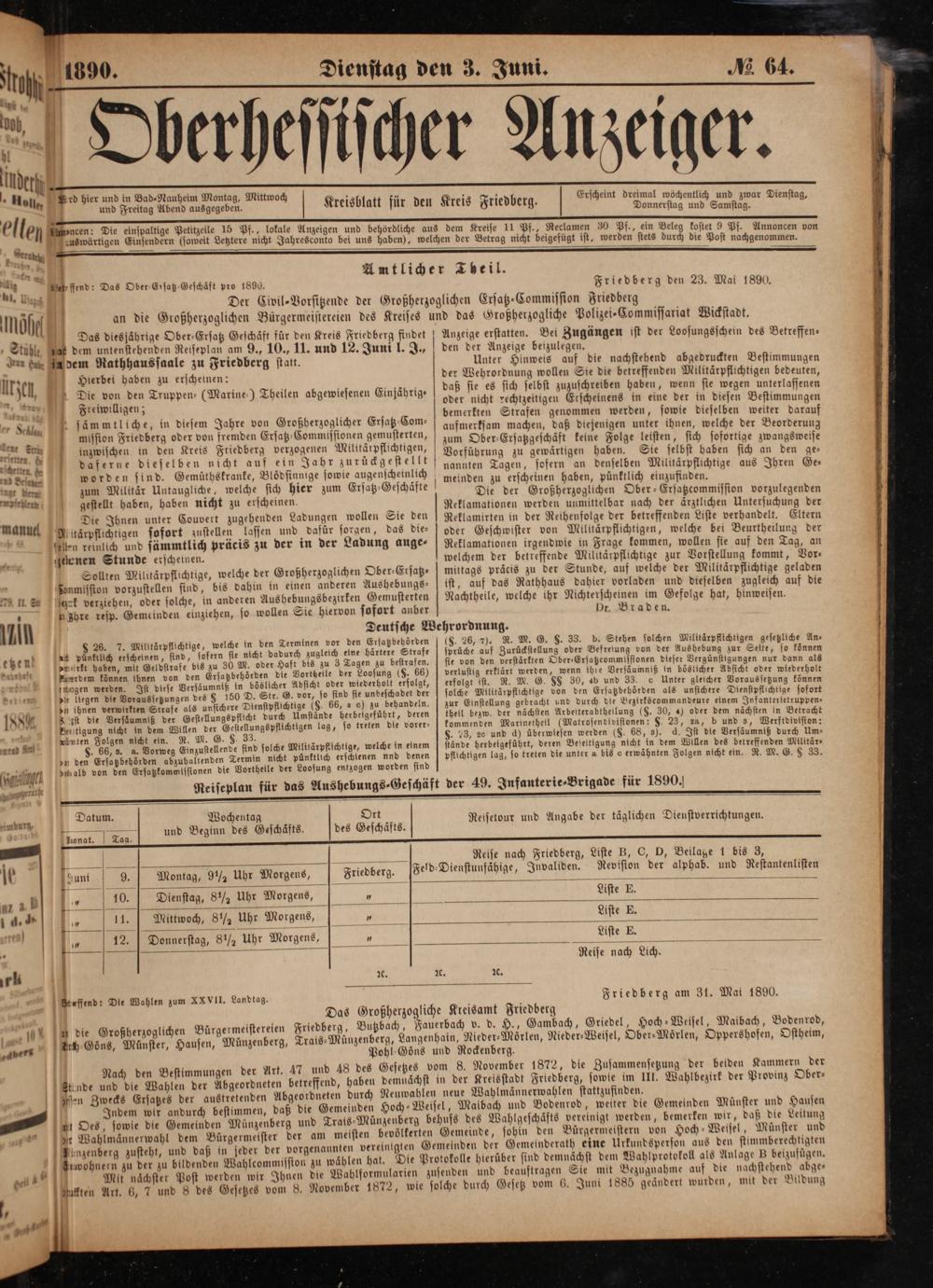 . fend: Das Ober-Ersatz-Geschäft pro 1890. Friedberg den 23. Mai 1890. uugi
