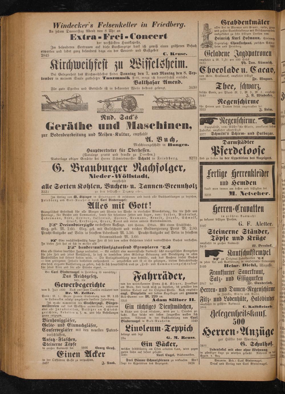 melden. Näheres in der Buchhandlung von Carl Bindernagel in Bad⸗ Nauheim. 3349