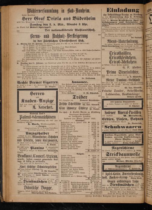 udolph Sack's Uorschuß-& Credit- Verein zu Friedberg 4 0 825 4 Eingetragene Genossenschaft aus Palenk Säemaschinen mit unbeschränkter Haftpflicht. 113 empfiehlt W. Bernbeck, Mete Ausweis pro Monat Januar 1890. in h nacht mit selbstthätiger Saatkastenregulirung und elast. Zug 607 A Erbsen, Linsen, Vo nen oerwen vorrichtung empfiehlt Kassebestand pro 1. Januar 1890 M. 42803. 83 znpfiehlt in bestkochender Waare Ina: A. Buch. Maschinengeschaft, Wechsel-Conto 2„29736. 79 V Fr. Gunderloch.. 2 in Hungen. Belebnungs Conto 24730.— 8 J E (Hauptvertretung für die Provinz Oberbessen.) eee— 5 1— 96 chuhwaa Cn 1 abe 549 Cataloge gratis Diensten. onto-Corrente B.„ 61720.— 5 a I eegr umzugshalb„„ 861% rn er ank⸗Conto 0 850.— 1 sizung f Effecten⸗Conto 23407. 45 Cotillon-Gegenständ Mas- verkaufe ich mein 5 5 185. ö* otillon⸗Gegen unde, 5 575 as⸗ 2 sämmtliches Lager in Manufactur, Schuhen lane ee e 11 keraden, närrische Kopfbedeckungen, ah Stief 1 ie G Reeserve Fonds Conto 5 8 Bärte, Masken 316 mid und Stiefeln, sowie Kurzwaaren, Coupons- und Sorten Conto* 23. 85 in reizenden Neuheiten, für Vereine zu Jabrik⸗ i 85 um schnell damit zu räumen, zu staunend billigen Preisen. Auswärtige Correspondenten 25. preisen, empfieblt Fritz Sehmidt. ff Assenbeim. 2 e S. Simon. Wechsel⸗Zinsen-Conto 4 612. 60 0 igel! Ein noch wenig 3 27 ist umzugsbalbe Belebnungs Zinsen Conto* 426.— 2 6— beben Pianino teen Eftelen- Jinsen- Conte 2 Regenschirf me ae e zu erfragen bei Bäckermeister Weißenbach, M. 3720 N. 57 für Herren, Damen und Kinder empfiehlt J. Keim. n dite usagasse. 562 ü T e 1 4 Ausgabe.— 6 1 Brockl C N Wechsel⸗Conte W. 16210. 28 rich baumwolle oben 0 halls, 8 bupers.(Icon, Belehnungs⸗Conto„ 8650.— fin besten Qualitäten und allen Farben, sowie alle Häkel 1 Be neueste, soeben complet gewordene Auf⸗ Sei een G5„ 116911. 0 garne empfiehlt billigst ffentlig lage, ist billig zu verkaufen. onto⸗Corrente B.„ 34420. 70 569 Heinr. Diehl. Usagasse. Meichekn Von wem? sagt die Exveditton d. An 481 Spareinlagen-Conto 1 57530. 70——„—— ͤ K* 4 l ö Anz. Bank⸗Conto„ 25000.— r Nais 1 11 1 1 Effecten⸗Conto„ 20409. 80 ir 0 lage den Zwei tüchtige Schmiedegesellen Auswärtige Correspondenten 1 1221. 84 Regen me 5 1 0 und einen kräftigen Lehrling sucht 493] Coupons und Sorten-Conto 14130. 98 und Schirmreparaturen ber C. Kalbfleis wk di Friedberg pH. Ph. Romeiser. Haus reparaturen-Conto 5 92. 93 Huge in junger, tüchtiger Schneidergeselle findet dauernde mio bilten und Utensillen⸗Conto 89.— 8„ 3 i ee E Beschaf tigung del Jacob Schmidt, Schnee. Unkosten ⸗Gonte„ 1403. 95 8 Aplel-Gelée, Zwetschenhonig, I ch„Schneider b to meister, in Klein Karben.“ 542 Kassebestand pro 1. Februar 1890„ 46937. 53 II 7 ke 80 8 ru bester Qualität bel 1 1* 20 Vetritag oder J. März wird auf einige Zelt M..—.8. 65 10 4 uch** 0 Georg Gro. s . ide 3 Eingang. Ken 23 0 braves Dienstmädchen 35 1555 M. 81069. 91 Wechsel⸗Conto⸗Corrent A. M. 0749.72 Gegen anständigen Lohn** ditton des Anzeigers. 586„ 7181.55 Wechsel⸗Conto⸗Corrent B.„ 34791. 86 0 Dien tmäd 0 en gesucht, das we Dänisch 6 Do 2„ 54032.36 Wechsel⸗Bank⸗Conto„ 27068. 13 9— 75 0 kochen kann ö 13631.72 Wechsel-Giro⸗Conto 27418. 27 und in allen häuslichen Arbeiten wohl erfahren ist. Ein. 5 ge, N 11299. 04 Wechsel Auswärtige Corresp., 1509. 91] tritt Petritag. Näheres bei der Exped. d. Anz. 470 ter — schönes Exemplar, zu verkaufen.„ 35175.— Eff eten-Conto„ 34222 Deen e— 11 nahen S K. 8 ar rnagel.. 583 Schweizerhaus, Bad⸗Nauheim. M. 2989 51 M. 155760. 31 Druck und Verlag von Carl ge le