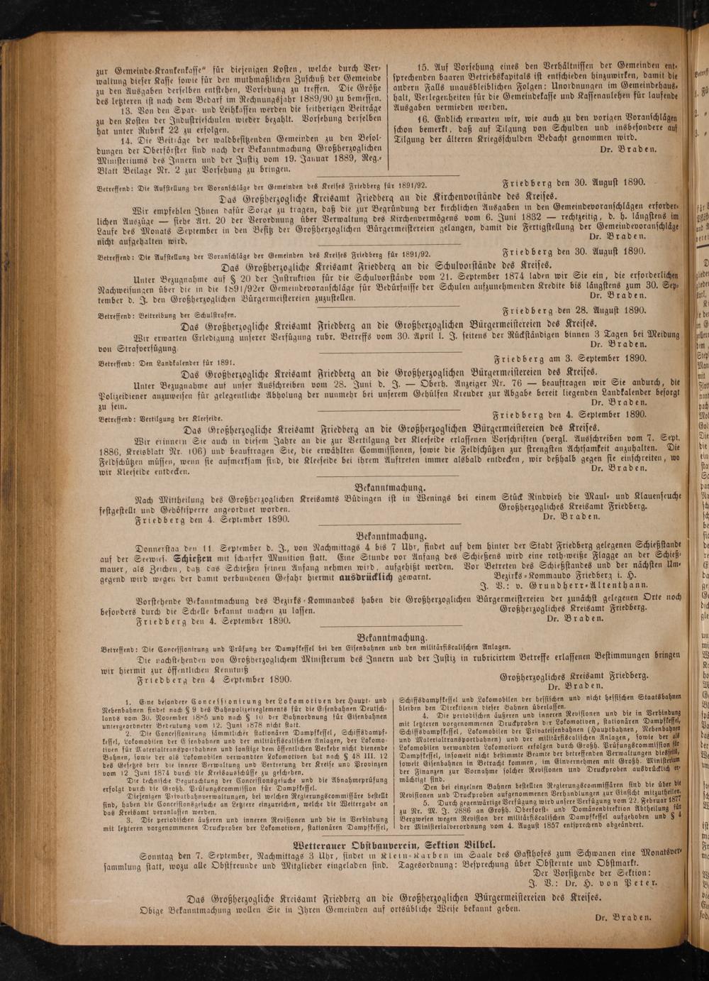 Großherzogliches Kreisamt Friedberg. Dr. Braden.