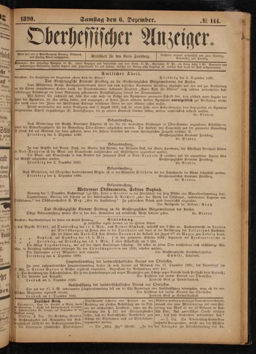 ben, lichen Mitglieder ergebenst einlade. Der Präsident des landw. Vereins von Oberhessen. U Laubach am 1. Dezember 1890. Friedrich Graf zu Solms-Laubach. Deutsches Reich. Deutschlands richteten eine Petition an den[Blättern werden neuerdings Nachrichten verbreitet,