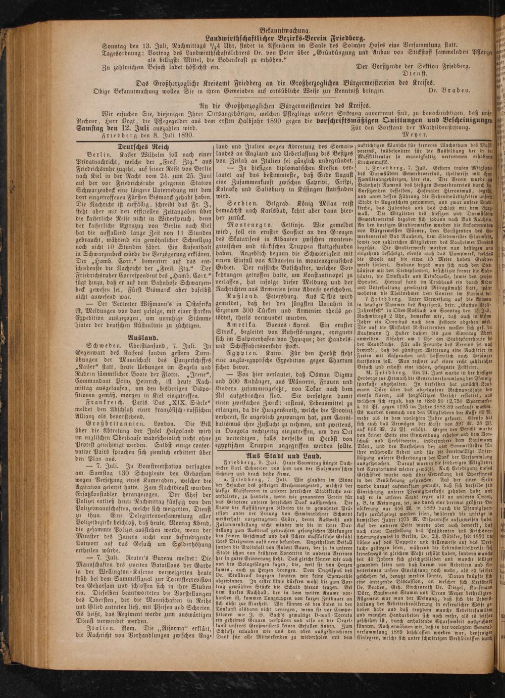 Samstag den 12. Juli auszahlen wird. Friedberg den 8. Juli 1890.