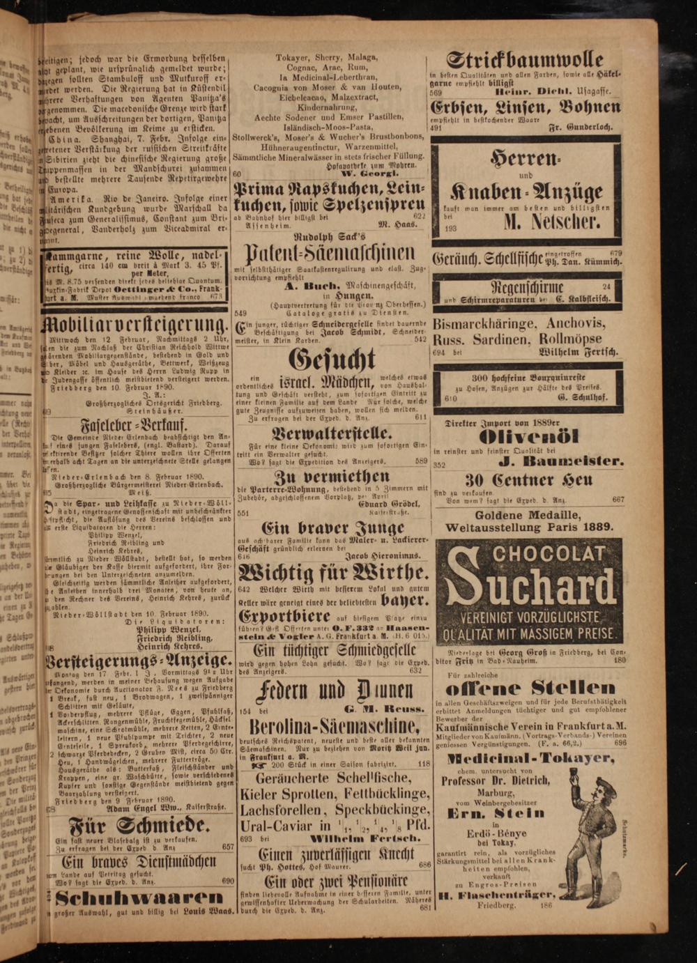 d Kleider ze. im Hause des Herrn Ludwig Rupp in Judengasse öffentlich meistbietend versteigert werden. Friedberg den 10. Februar 1890.