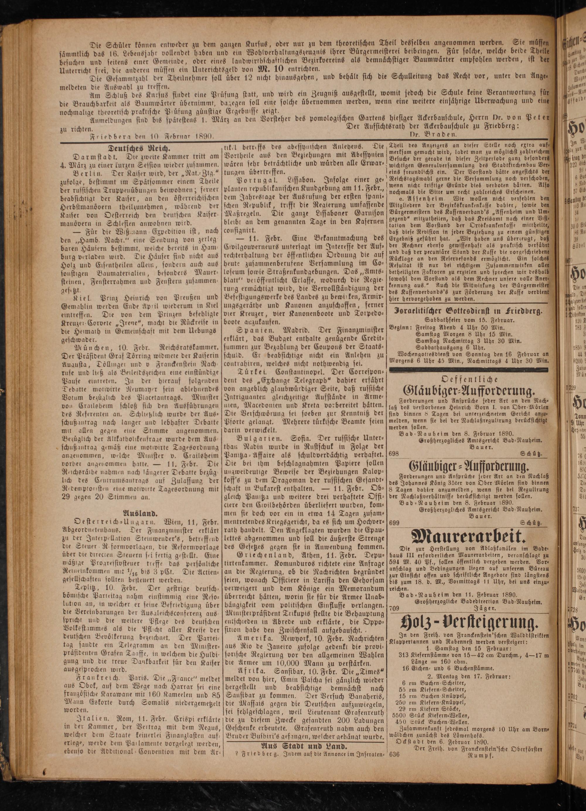 Friedberg den 10 Februar 1890.