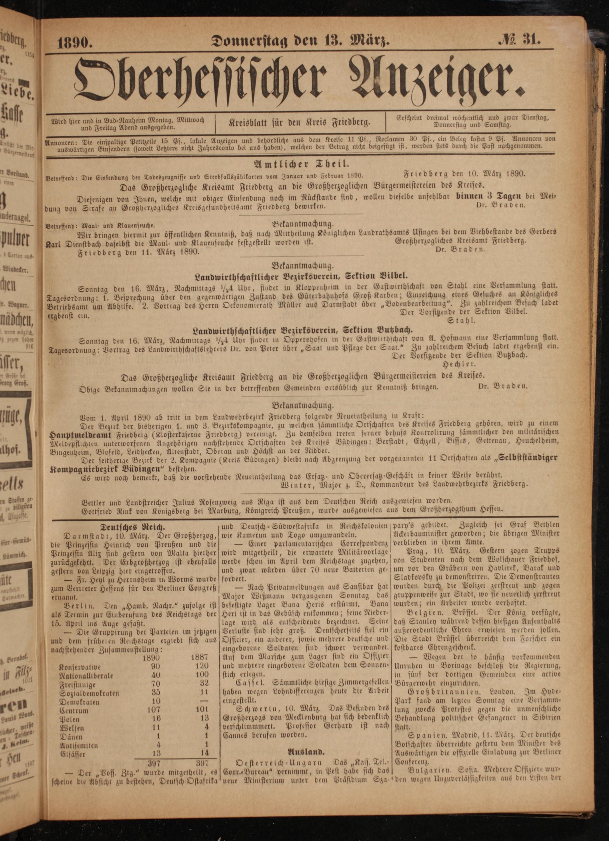Friedberg den 11. März 1890. Dr. Braden.
