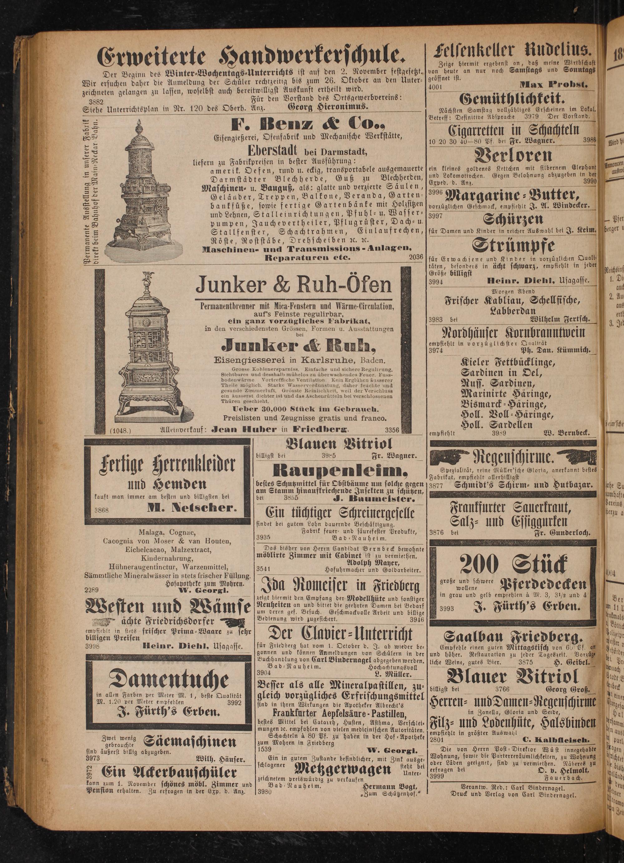 3994 Heinr. Diehl, Usagasse. 5 Morgen Uben gz Frischer Kabliau, Schellfische, Labberdan 3983 bet Wilhelm Fertsch.