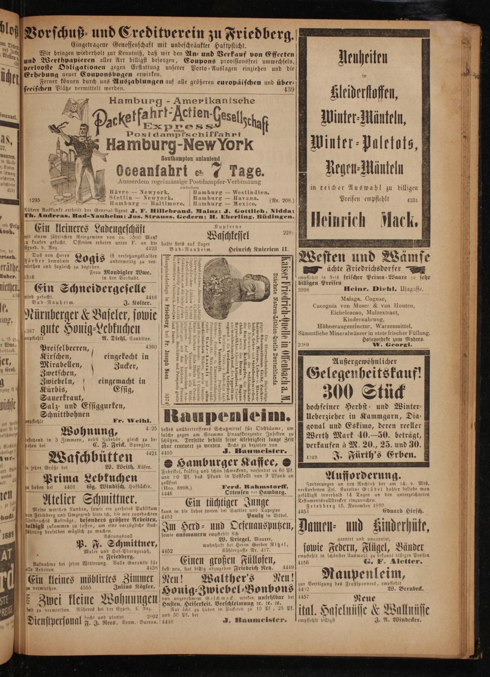 . J 0 f zwischen in reicher Auswahl zu billigen! N 5 Havre— Newxork. Hamburg— Westindien. 0 zu 8 9 1 A stettin— Newxork. Hamburg— Havana.* Preisen empfiehlt 0 f* 5 fklamburg— Baltimore. Hamburg— Mexico.. 206.) 525 9 2 pfieh 8 Näbere Auskunft ertbeilt der General Agent J. F. Hillebrand, Mainz;: J. Gottlieb, Nidda: