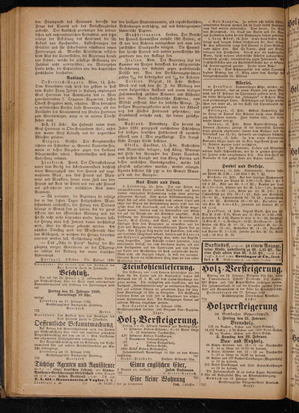 Friedberg am 15. Februar 1890. Großherzogliches Amtsgericht Friedberg.