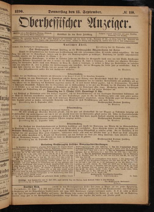 Friedberg den 15. September 1890. Dr. Braden.