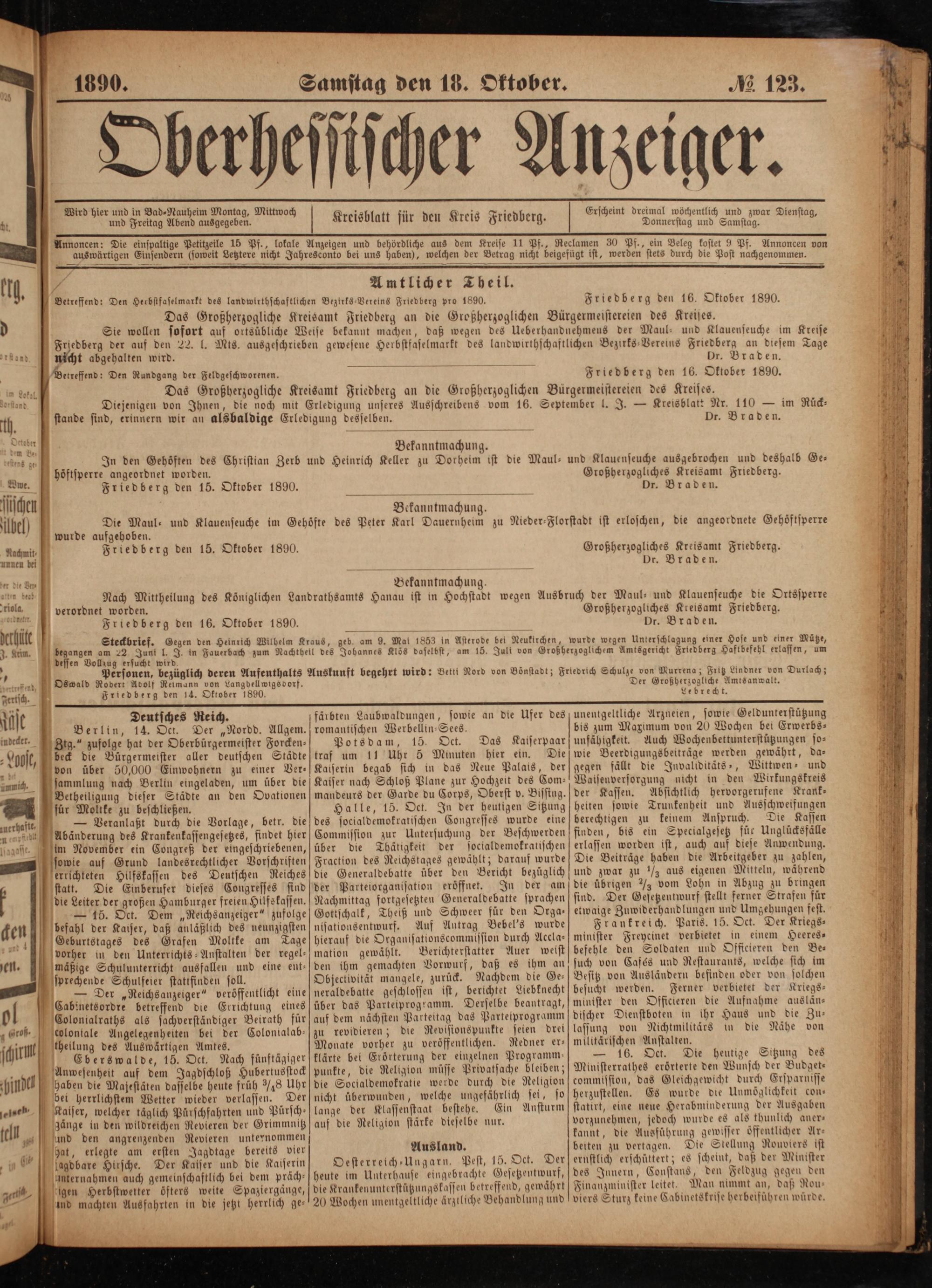 höftsperre angeordnet worden. Friedberg den 15. Oktober 1890.
