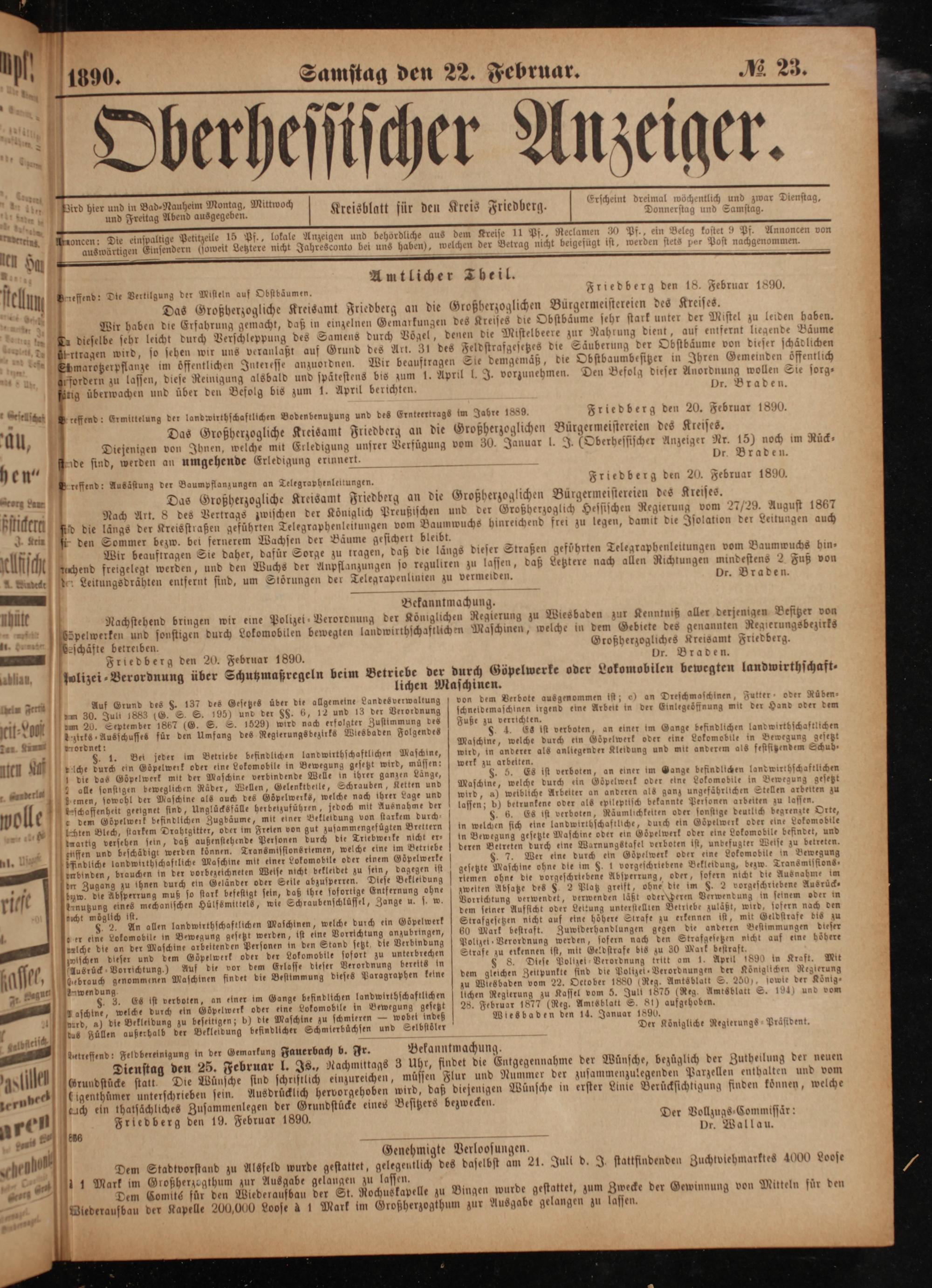 . Friedberg den 20. Februar 1890. Dr. Braden.