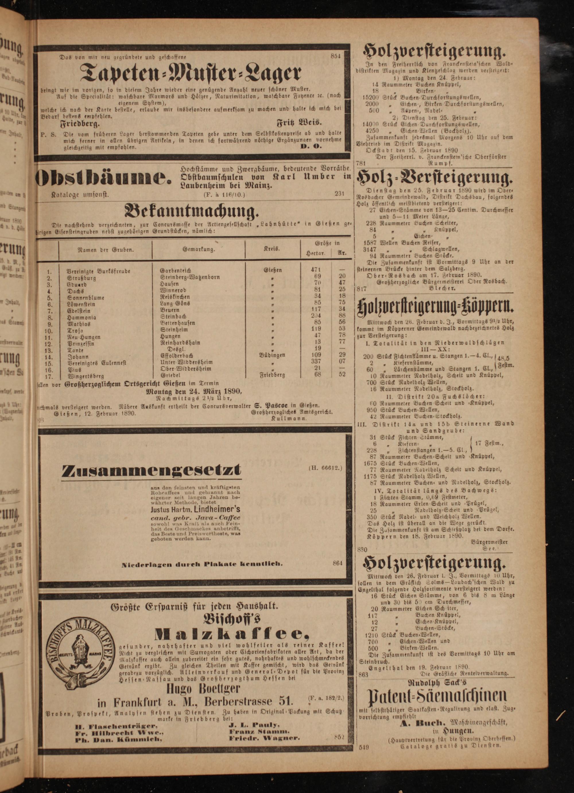 rcmals versteigert werden. Gießen, 12. Februar 1890.