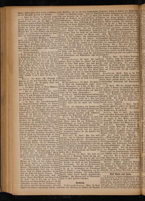 Ausland. Oesterreich⸗-Ungarn. Wien, 22. April.