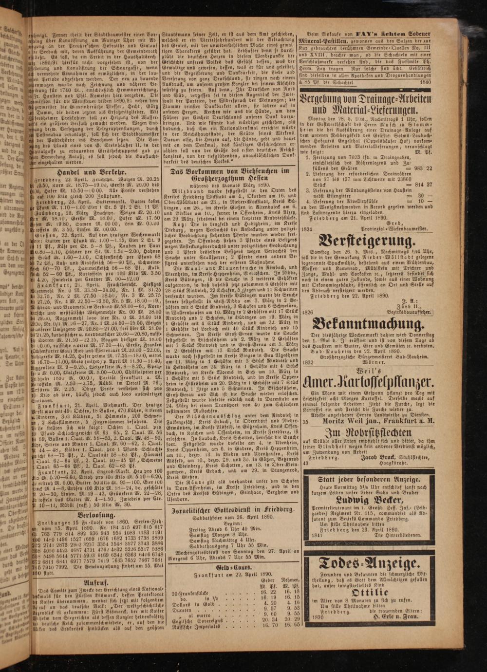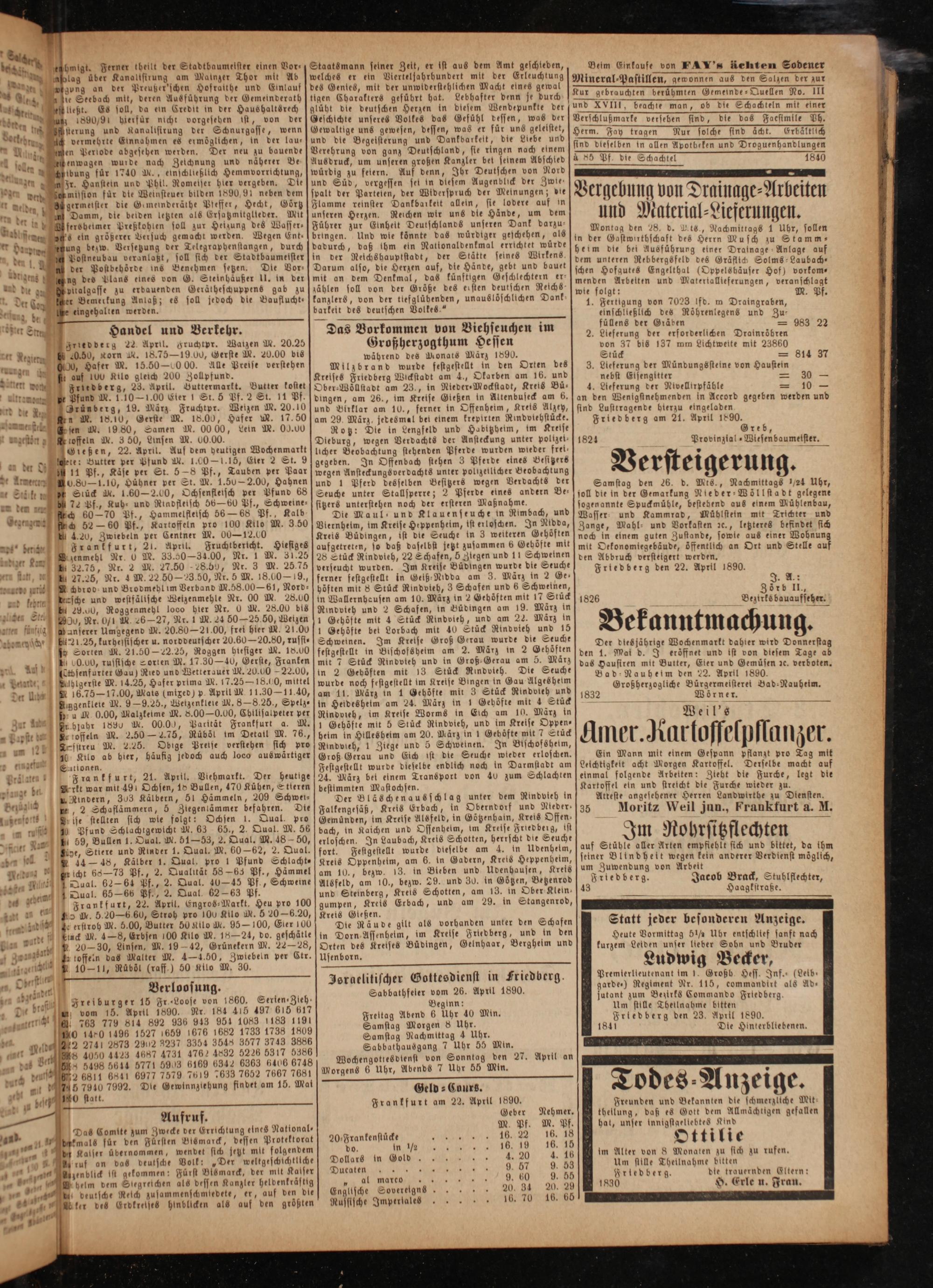 an den Wenigstnehmenden in Accord gegeben werden und sind Lusttragende hierzu eingeladen Friedberg am 21. April 1890.