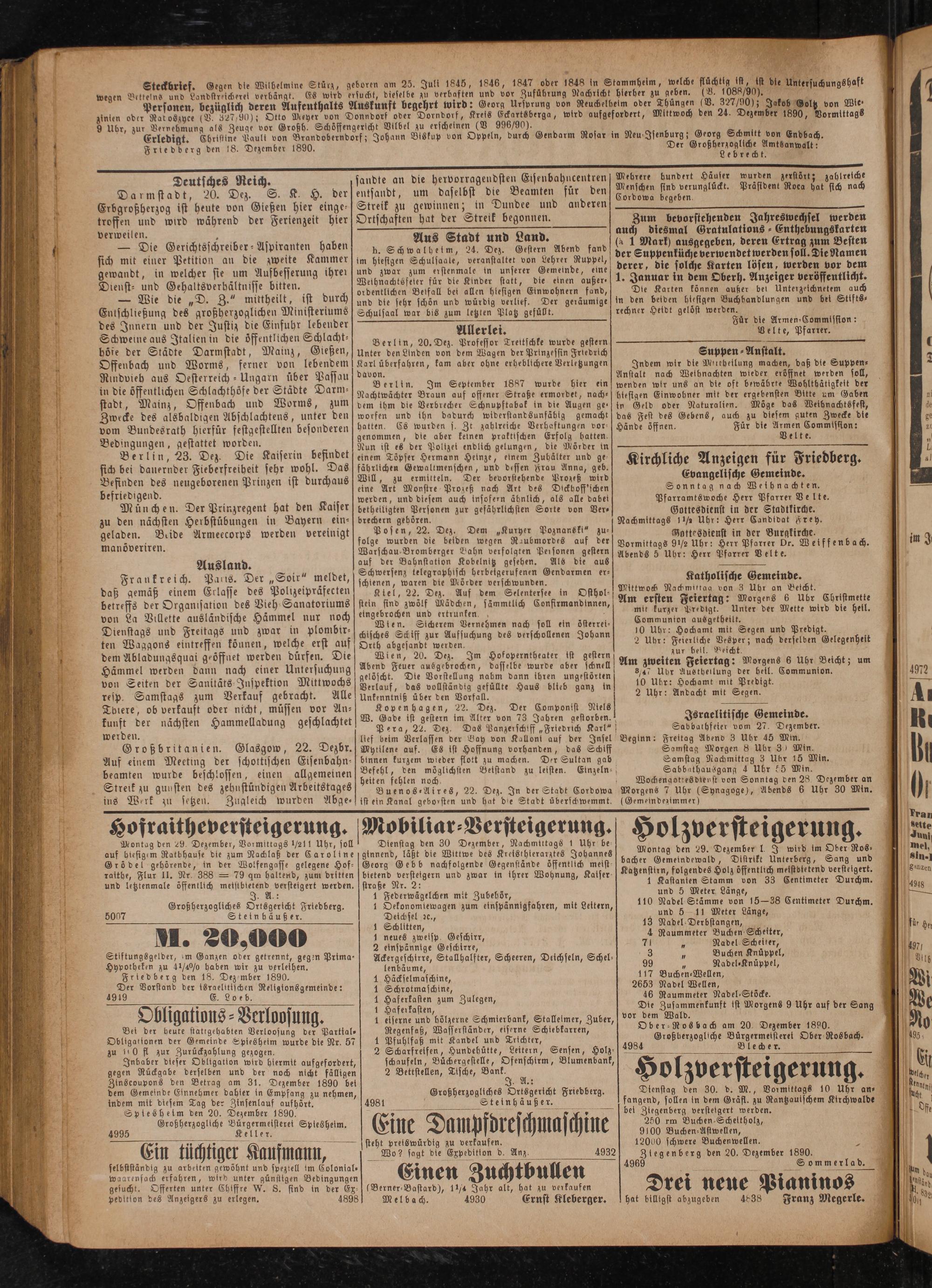 Kirchliche Anzeigen für Friedberg. Evangelische Gemeinde. Sonntag nach Weihnachten. Pfarramtswoche Herr Pfarrer Velte. Gottesdienst in der Stadtkirche. eee 1½ Uhr: Herr Candidat Frey. Wottesdieust in der Burgkirche. Vormittags 9½ Uhr: Herr Pfarrer Dr. Weiffenbach. Abends 5 Uhr: Herr Pfarrer Velte.