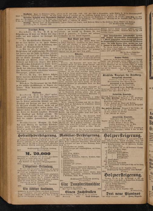 Inbaber dieser Obligation wird hiermit aufgefordert, gegen Rückgabe derselben und der noch nicht fälligen Zinscoupons den Betrag am 31. Dezember 1890 bei dem Gemeinde Esnnehmer dahser in Empfang zu nehmen, indem mit diesem Tag der Zinsenlauf aufhört.