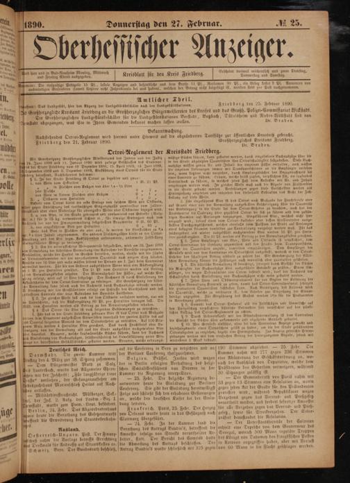 1 . rd hier und in Bad⸗Nauheim Montag, Mittwoch N 73 8 Erschei reime öchen Diensta N 8 8 8. ö* 7 scheint dreimal wöchentlich und zwar Dienstag, — 1 und Freitag Abend ausgegeben. Kreisblatt für den Kreis Friedberg. Donnerst—— Samstäg.. 8 dn cen: Die einspaltige Petitzeile 15 Pf., lokale Anzeigen und behördliche aus dem Kreise 11 Pf., Reclamen 30 Pf., ein Beleg kostet 9 Pf. Annoncen von