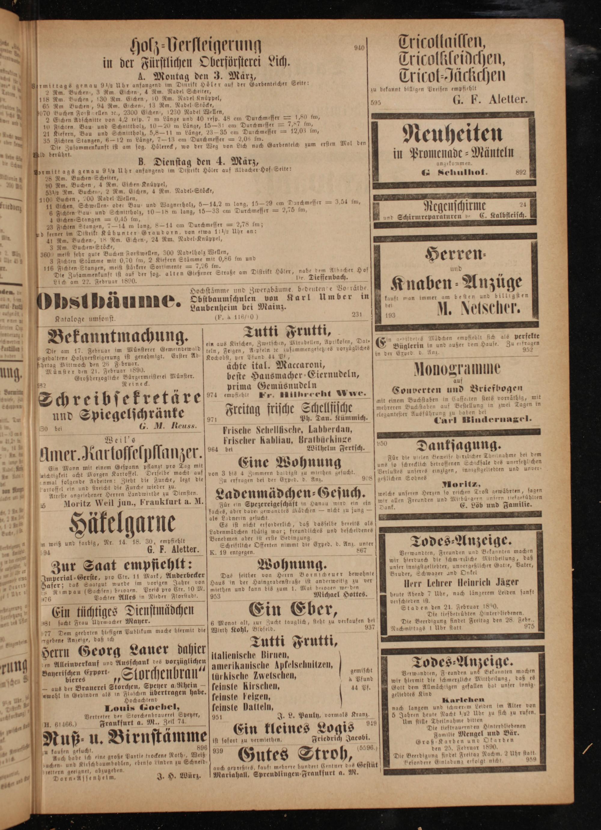 llerr Lehrer Heinrich Jäger beute Abend 7 Ubr, verschieden ist Staden den 21. Februar Die tiefbetrübten Hinterbliedenen Die Beerdigung findet Freitag den Febr Nachmittags 1 Ubr k statt 975
