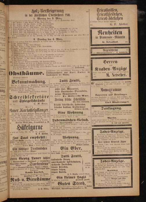 Holz-Versteigerung in der Fürstlichen Oberförsterei Lich. A. Montag den 3. März,