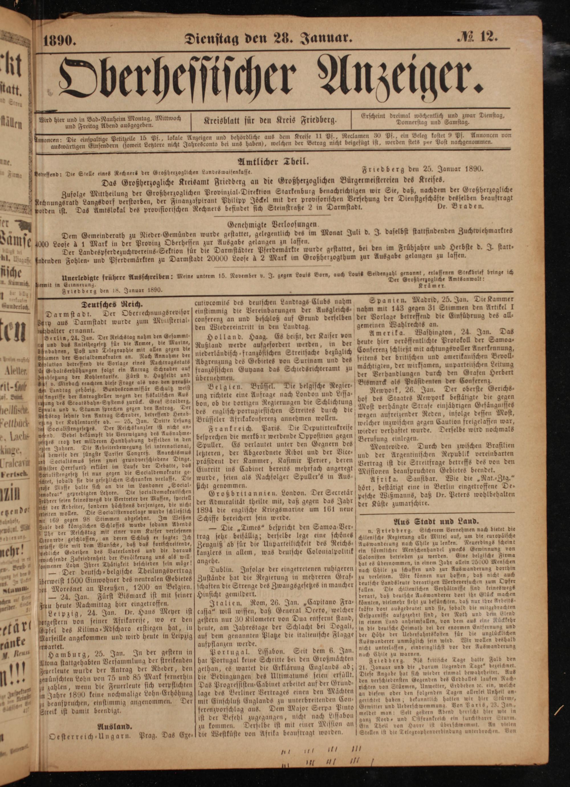 Friedberg den 25. Januar 1890.