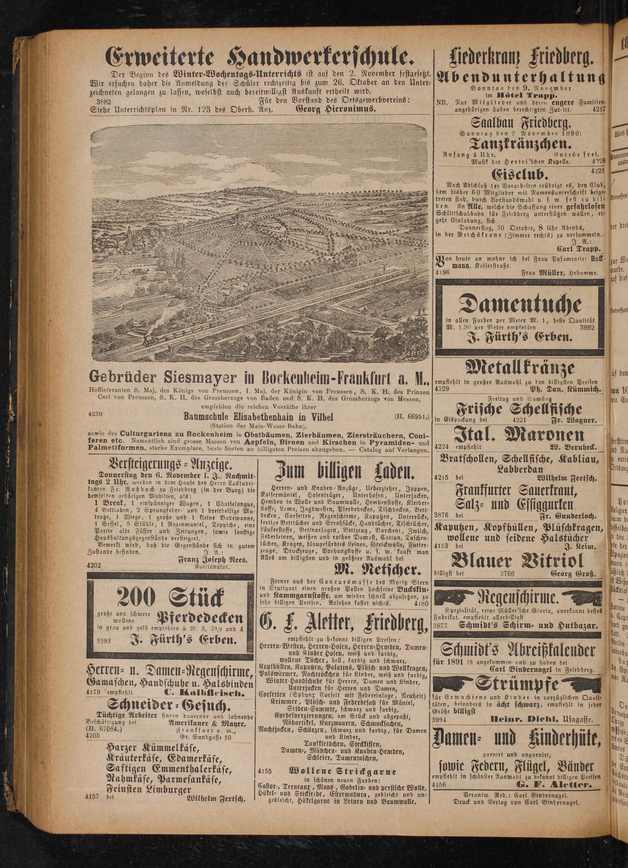 für 1891 ist angekommen und zu baben bel Carl Bindernagel in Friedberg.