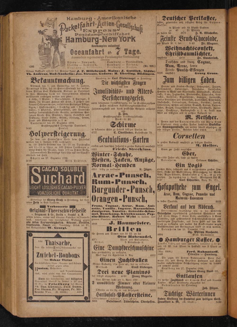 25 Pf.; in Friedberg bei Herrn Sh. Dan. Kümmien, Ferd. Damm, Prz. Stamm, Fr. Wagner, Fr. Hil- H. 46336.)