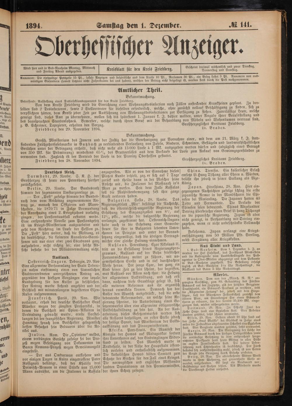 und Freitag Abend ausgegeben. Kreisblatt für den Kreis Friedberg.