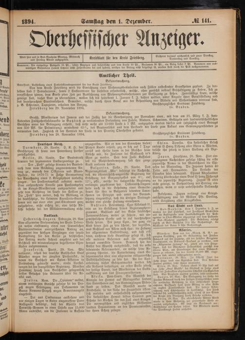 verwenden sind. Zugleich ist der Vertrieb der Loose in der Provinz Oberhessen gestattet. Friedberg den 28. November 1894.
