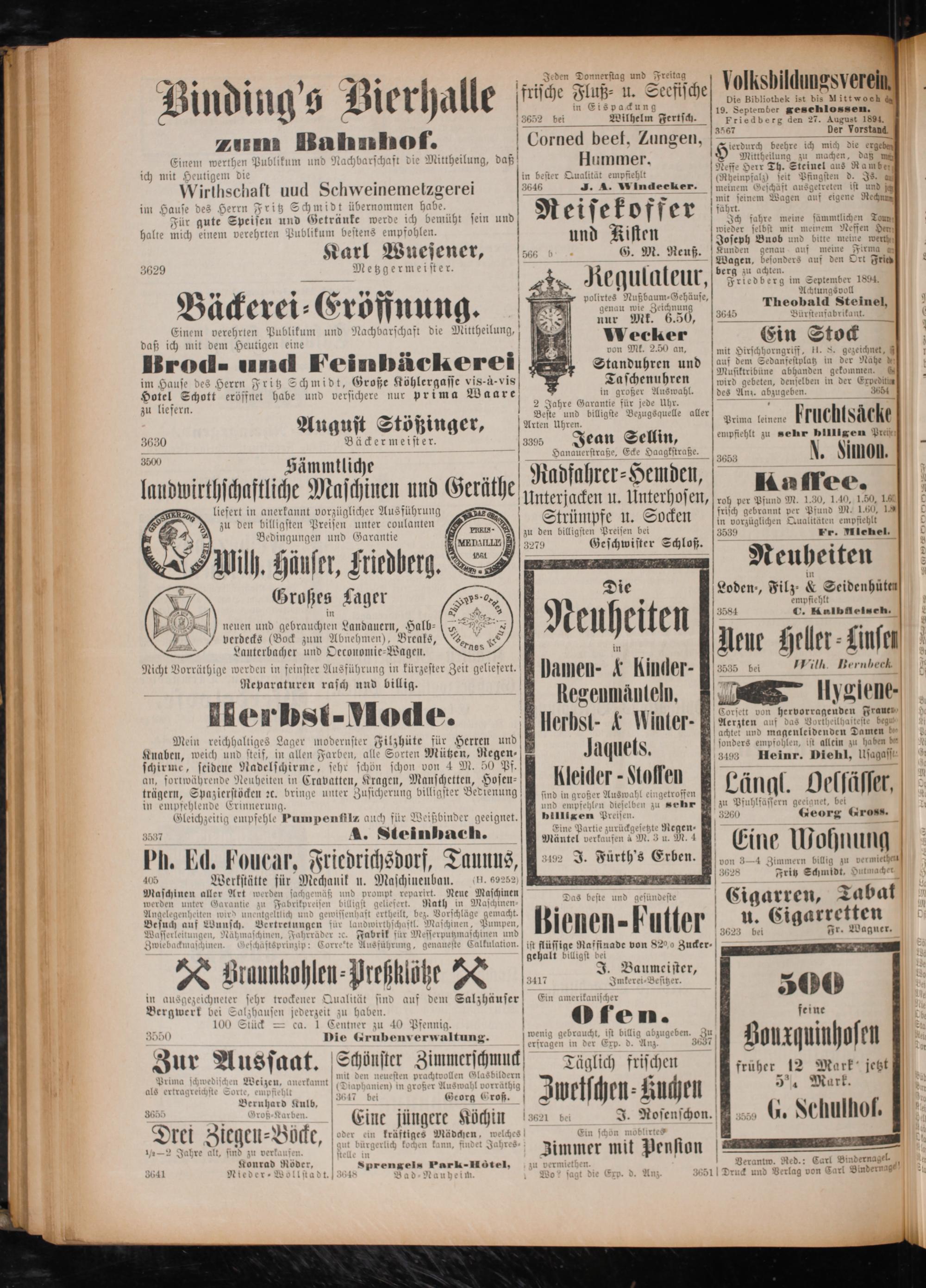 Friedberg den 27. August 1894. 3567 Der FVors a