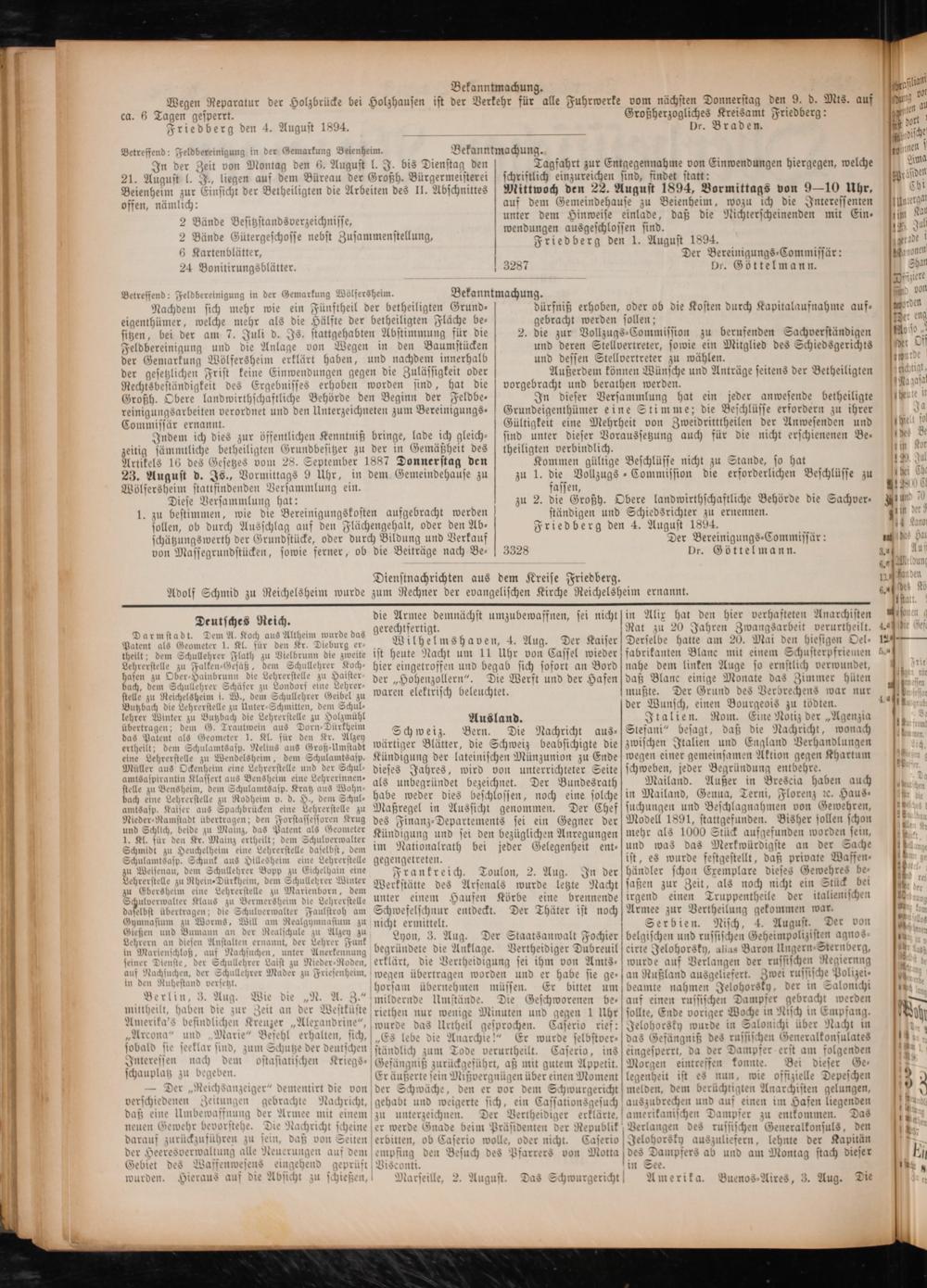 ca. 6 Tagen gesperrt. 1 Friedberg den 4. August 1894.