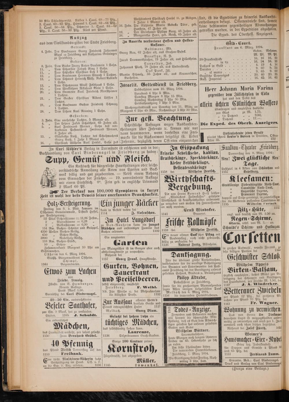Israelit. Gottesdienst in Friedberg. Sabbathfeier vom 10. März 1894.