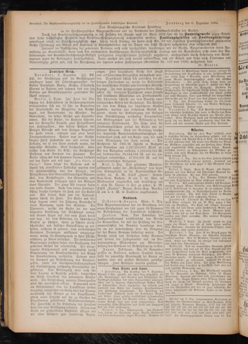 Ausland. Oesterreich-Ungarn. Wien, 5. Dez. Das Abgeordnetenhaus hat bei Berathung des neuen Strafgesetzes mit 148 gegen 66 Stimmen
