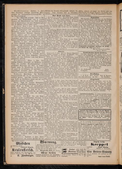 e. Friedberg, 7. Jan. Gestern Abend 83/ Uhr wurde am nördlichen Himmel ein Meteor beobachtet, welches von südwest nach nordost flog und scheinbar zerplatzte.