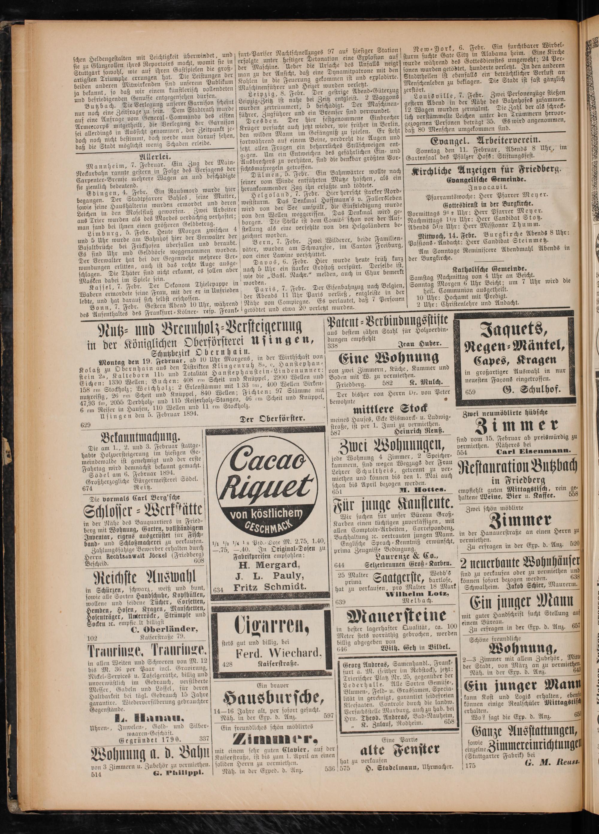 Vormittags 91 Uhr: Herr Pfarrer Meyer. Nachmittags 1¼ Uhr: Herr Candidat Stotz. Abends 5½ Uhr: Herr Missionar Thumm. Mittwoch, 14. Febr. Burgkirche Abends 8 Uhr: Passions-Andacht: Herr Candidat Steinmetz. Am Sonntage Reminiscere