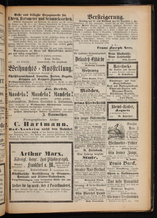 Aufnahmen finden täglich in den Stunden von 10—4 Uhr bei jeder Witterung statt. Die Platten von meinem Friedberger Geschäft „Atelier Th. Dieffenbach“ sind aufbewahrt und werden Nach— bestellungen entgegengenommen. 5112