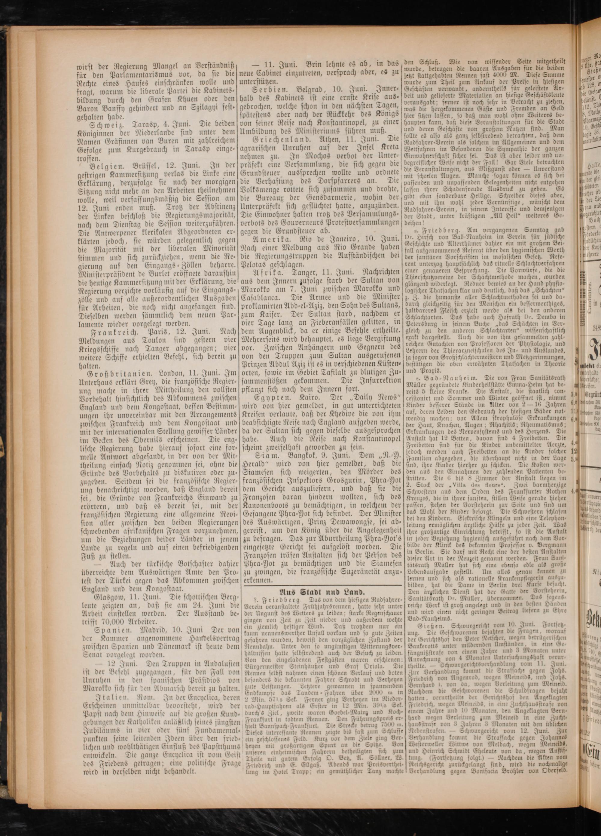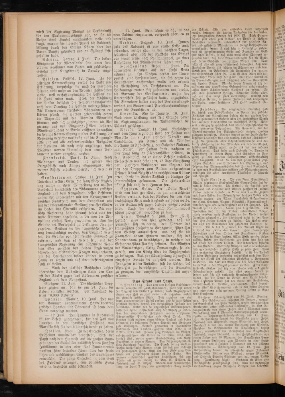 Die Einwohner halten trotz des Versammlungs⸗ d 1 erneurs Protestversammlungen deihen! gegen die Grundsteuer ab.. Friedberg. Am vergangenen Sonntag gab Amerika. Rio de Janeiro, 10. Juni. De. Hirsch von Bad nee im Verein für jüdische Nach einer Me eldung aus Rio Grande haben(80 hi und Alterthümer dahier ein mit großem Bei