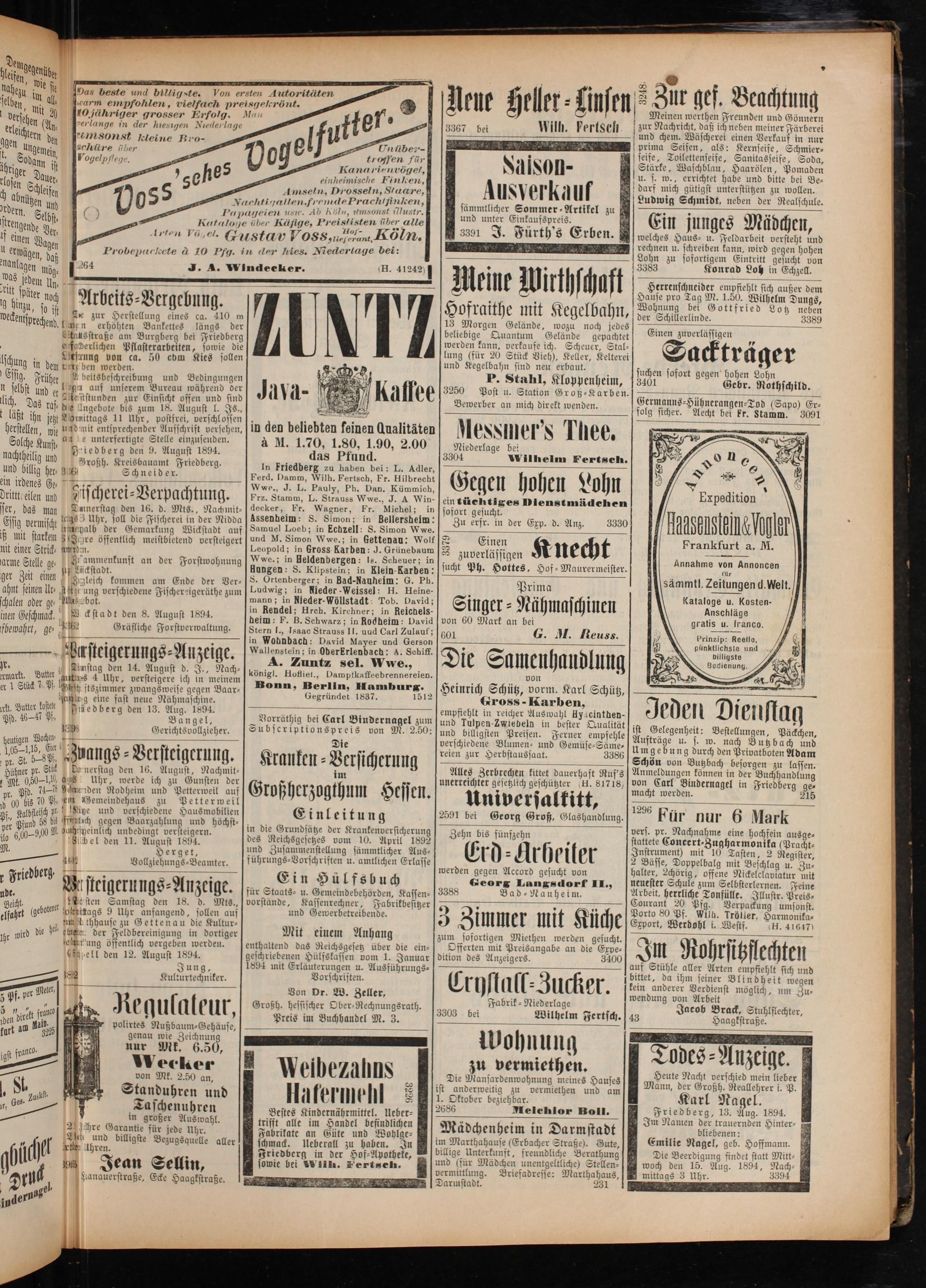 Umgebung durch den Privatboten Adam Schön von Butzbach besorgen zu lassen. Anmeldungen können in der Buchhandlung von Carl Bindernagel in Friedberg ge⸗ macht werden. 215